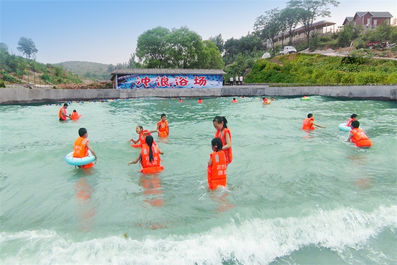 The surf bath is a small artificial surf bath in the Central Plains, which simulates the true sea waves. The slope is designed to be around 15° and the water depth is 0.5m-1.8m. In the huge wave pool, the waves are raging, the waves are soaring, let the waves coming and forth, and swaying, experience the infinite stimulation and joy brought by the tide of surfing...