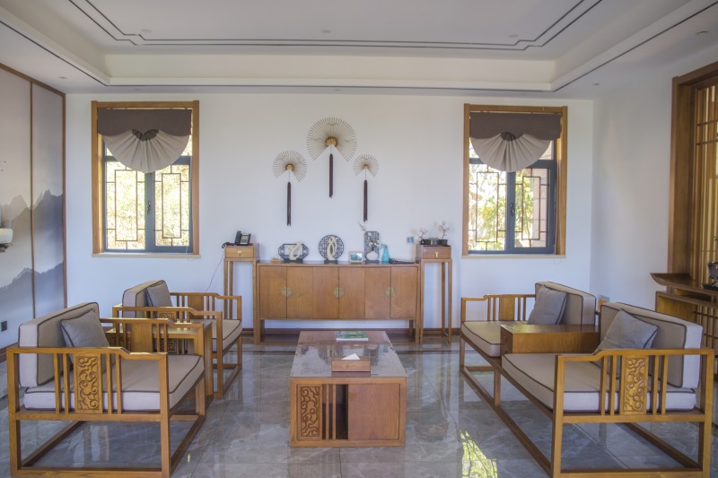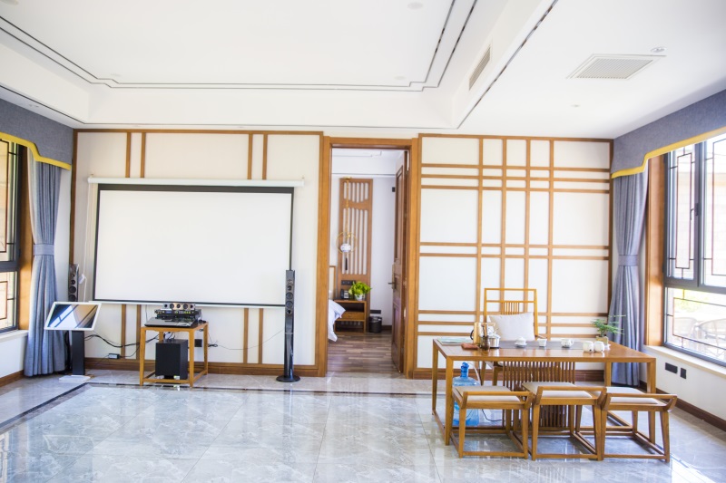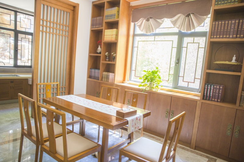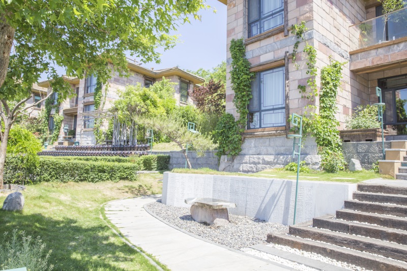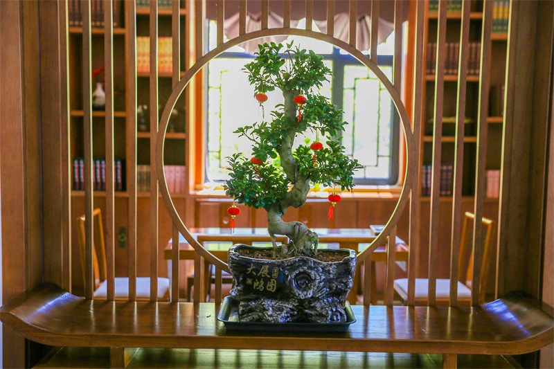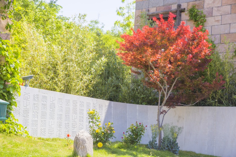 诗,以中国诗歌的语言美、意境美为主题,以写淇河之美的诗词为主,把诗中的景物变成院子中的微缩景观,如竹、莲、鱼、鸟、太行奇石、山水等。