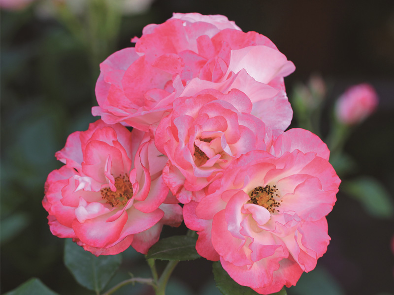 丰花月季多分枝,呈较矮的灌丛状,具有梗长、花美、耐寒、耐热、花团锦簇等优点,且新叶和秋叶红艳,非常适宜装饰街心、道旁,作沿墙的花篱,独立的画屏或花圃的镶边。