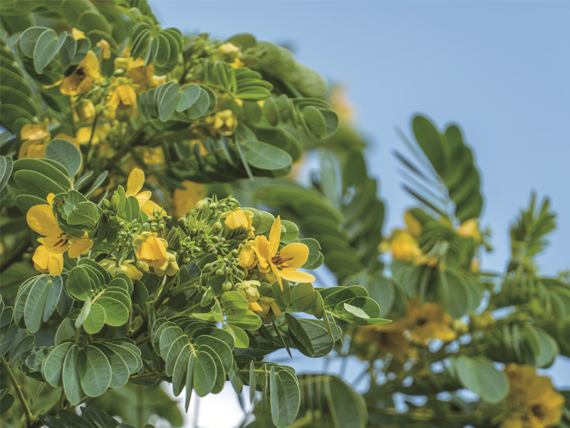 决明,豆科决明属。一年生亚灌木状草本植物,直立、粗壮、高可达2米。叶柄上无腺体;小叶倒卵形或倒卵状长椭圆形,膜质,顶端圆钝而有小尖头,上面被稀疏柔毛,下面被柔毛;托叶线状,早落。花腋生,常2朵聚生;花梗丝状;尊片稍不等大,卵形或卵状长圆形,膜质,花瓣黄色,花药四方形,子房无柄,荚果纤细,近四棱形,种子菱形,光亮。8-11月开花结果。