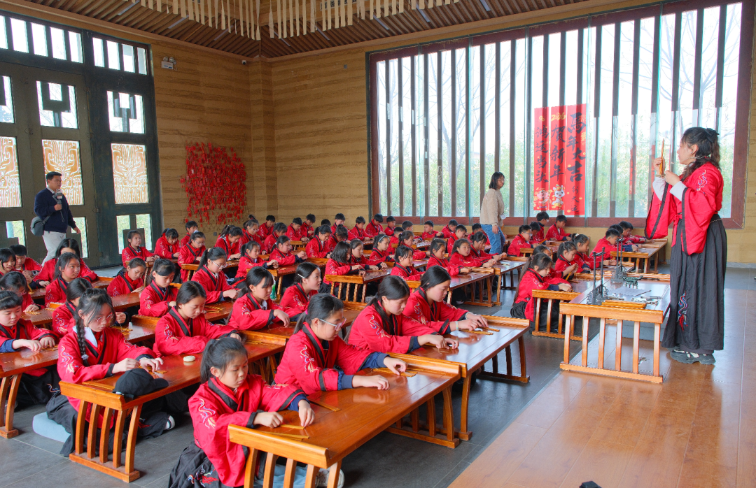 身着传统汉服, 怀着崇敬之心行拜师礼,表达对老师的尊重与感恩,老师则回以殷切的期望与鼓励;编制竹简,感受古老文字载体的发展与演变,这些课程,让同学们在仪式中感受传统文化的熏陶,增强文化认同感和民族自豪感。