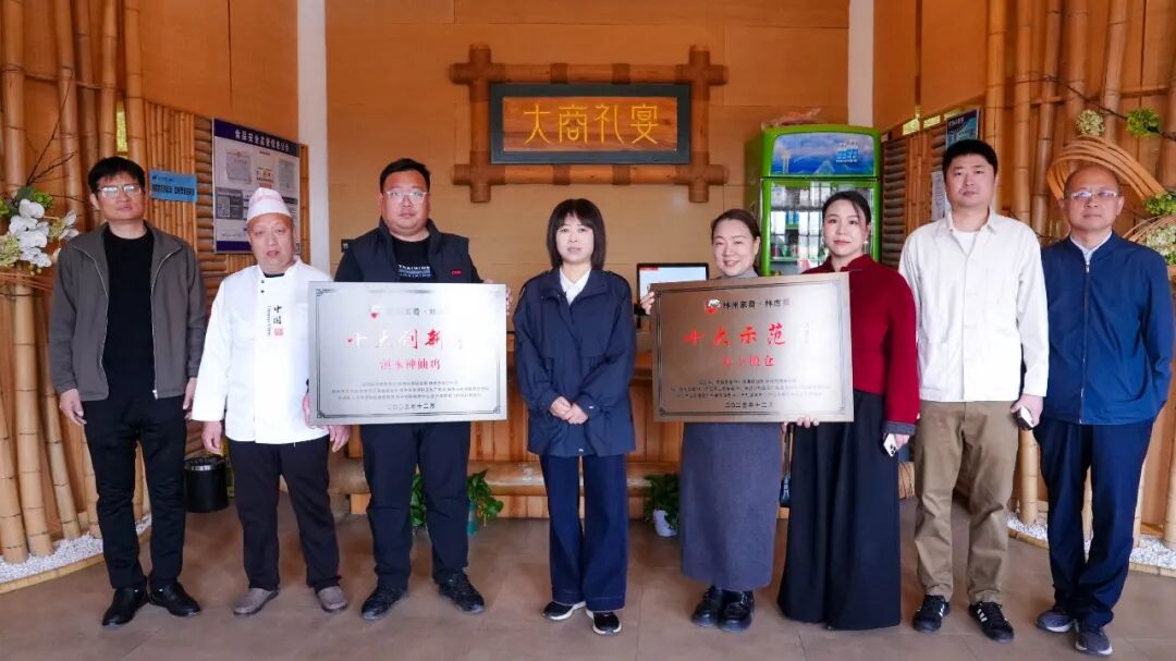3 月 25 日,林州市餐饮与住宿行业协会走进万泉湖景区,为景区餐饮品牌颁发荣誉奖牌。淇水神仙鸡荣获“林州市十大创新菜”称号,大商礼宴获评“林州市十大示范店”,以实力斩获行业双重认可,为万泉湖文旅美食再添金字招牌。
