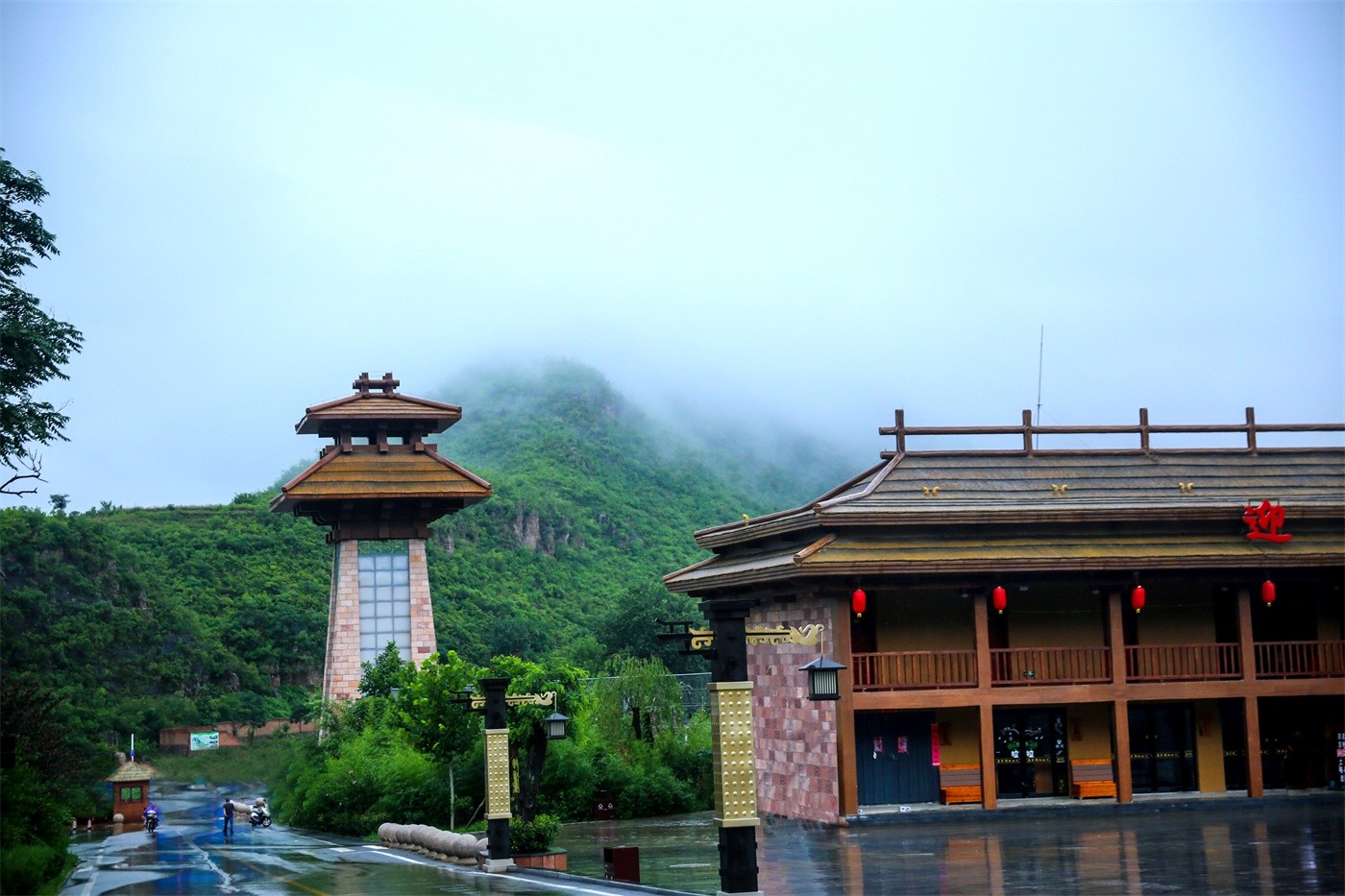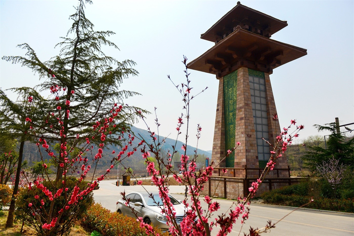 文献记载也恰恰证明了这一点。《说文解字》曰“阙,观也,在门两旁,中央阙然为道也”。是为阙名的由来。可知阙在门的两旁,中间“阙然为道”。我们眼前的这座阙高21米,底座长宽7.5米,从上到下可以分为阙顶、阙身、台基三部分。“阙顶”即屋顶,用仿木的脊饰、瓦当、柱子、檐屋等形状,就像木建筑的屋檐,既有遮雨的功能,又具装饰性。阙身相当于房屋,由石材堆砌,在石材上雕刻出人物、图象,具有很高的观赏价值,并刻出模仿木结构的栏额、立柱等,衬托着上面的楼阁显得高大、雄奇。“台基”代表中国古代建筑中常见的夯土台基。我们万泉湖将阙建造于此,有两重意思:一,这是我们万泉湖景区的地标性建筑,标识我们景区的位置;二,淇河和淅河这两条河流在此交汇,历史长河中积淀的博大精深的文化在此传承,千年的爱情诗篇在此延续。